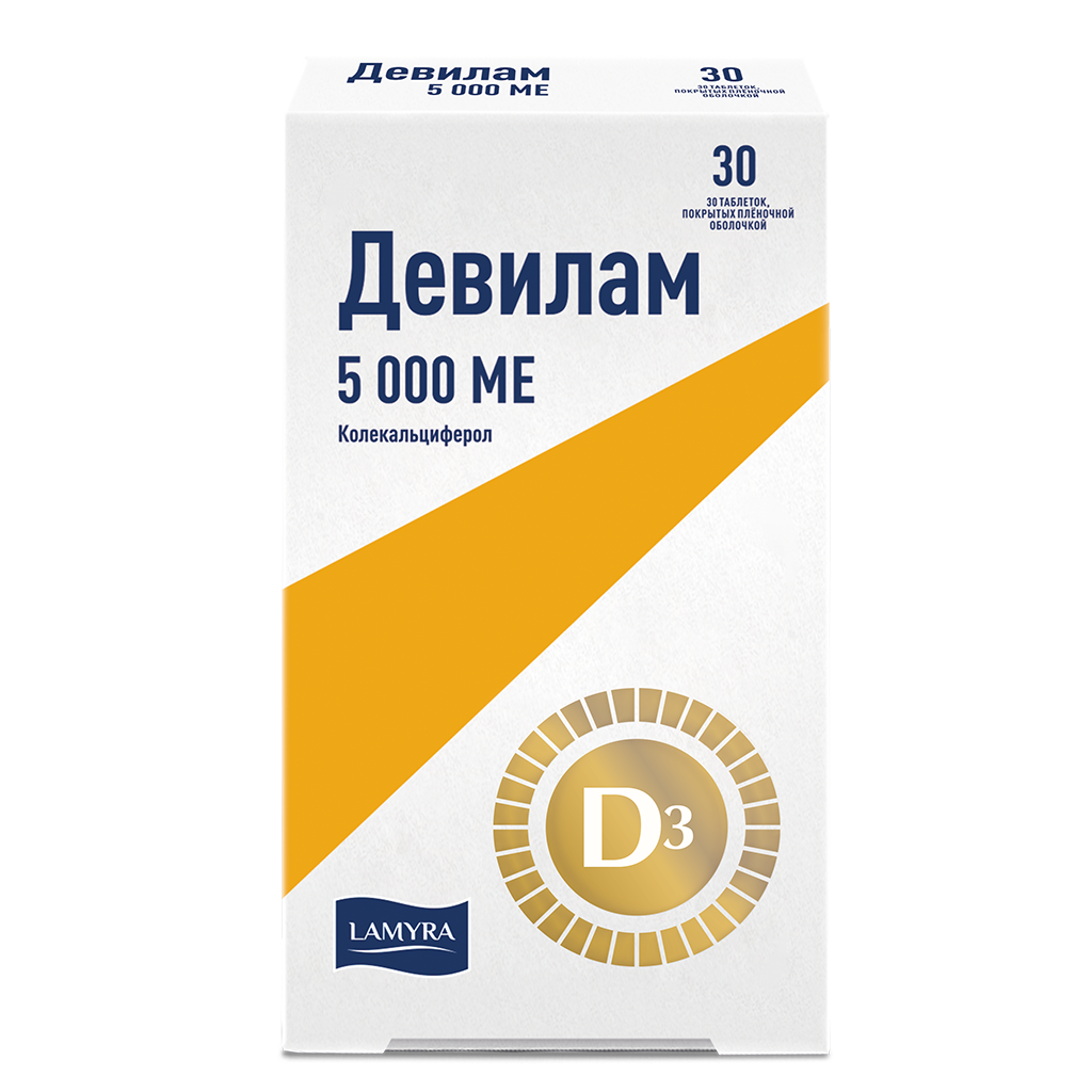 Девилам таблетки покрытые плёночной оболочкой 5000МЕ №30