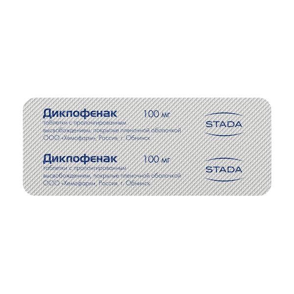 Диклофенак таблетки пролонгированного действия покрытые пленочной оболочкой 100 мг №20
