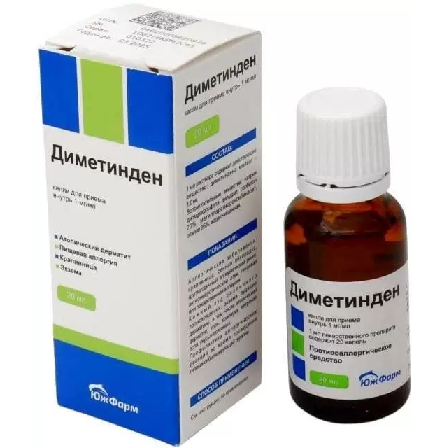 20 капель препарата соответствуют 1 мл препарата или 1 мг диметиндена.