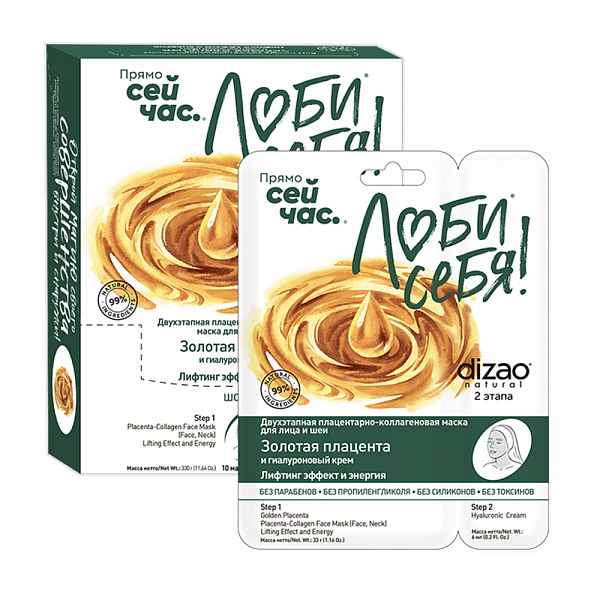 Dizao двухэтапная плацентарно-коллагеновая маска для лица, шеи и век Золотая плацента №10