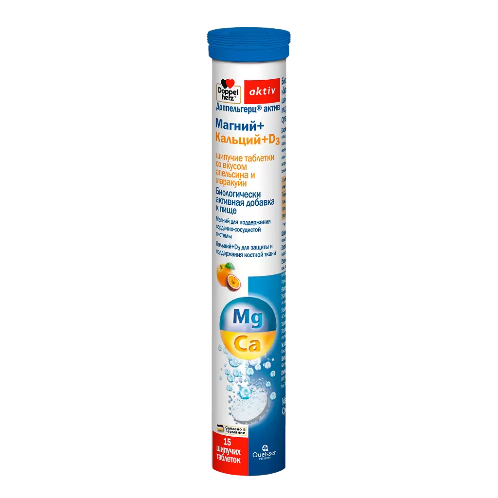 Доппельгерц актив Магний + Кальций + D3 таблетки шипучие со вкусом апельсина и маракуйи 6500мг №15