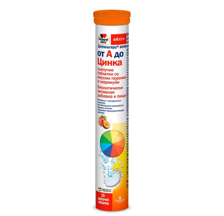 Доппельгерц актив от А до Цинка шипучие таблетки со вкусом персика и маракуйи массой 6,2г №15