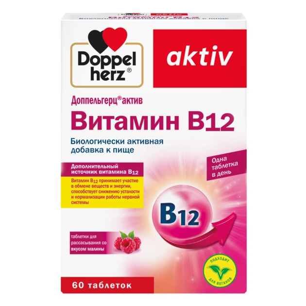 Витамин В12 представлен в форме таблеток со вкусом малины, диспергируемых в полости рта, которые тают на языке, и не требуют запивания водой.