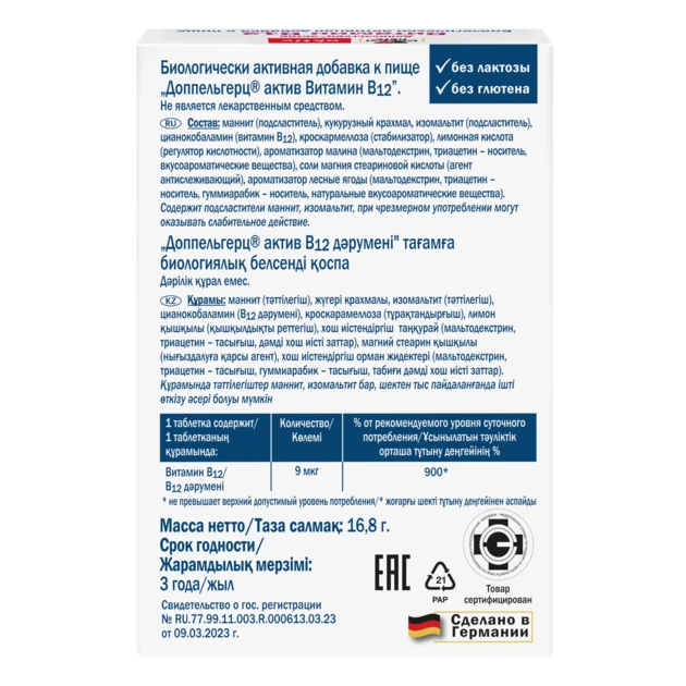 Доппельгерц актив Витамин В12 таблетки для рассасывания массой 280мг №60