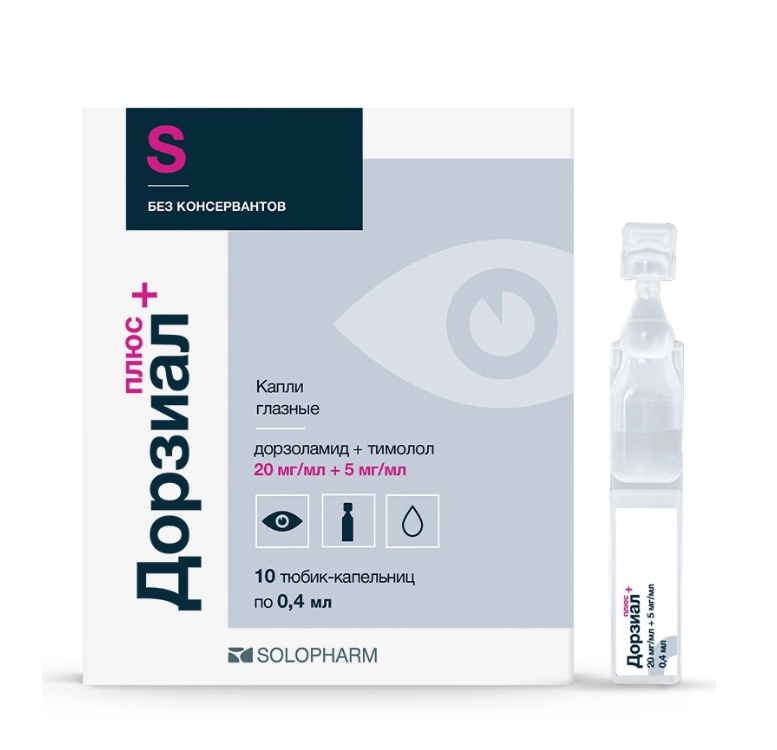 Дорзиал плюс капли глазные 20мг/мл+5мг/мл тюбик-капельница 0,4мл №10