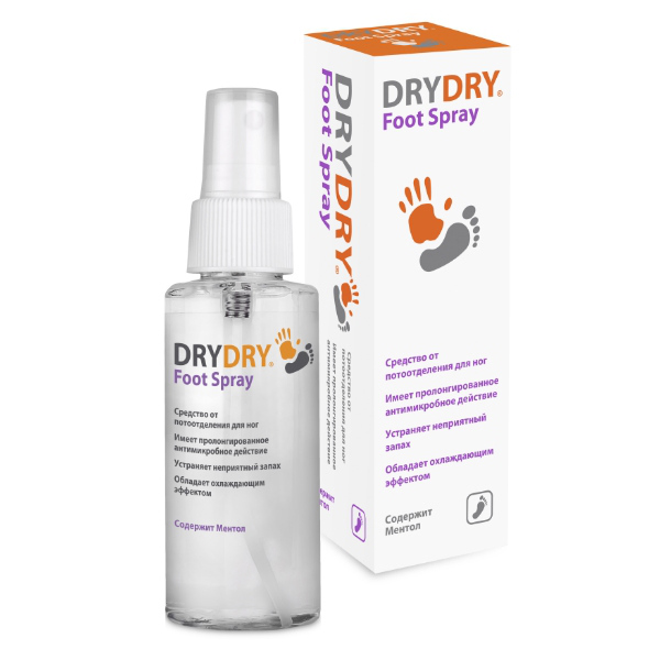 DRYDRY Foot Spray (ДРАЙДРАЙ Фут Спрей) - средство от потоотделения для ног с пролонгированным антимикробным действием.