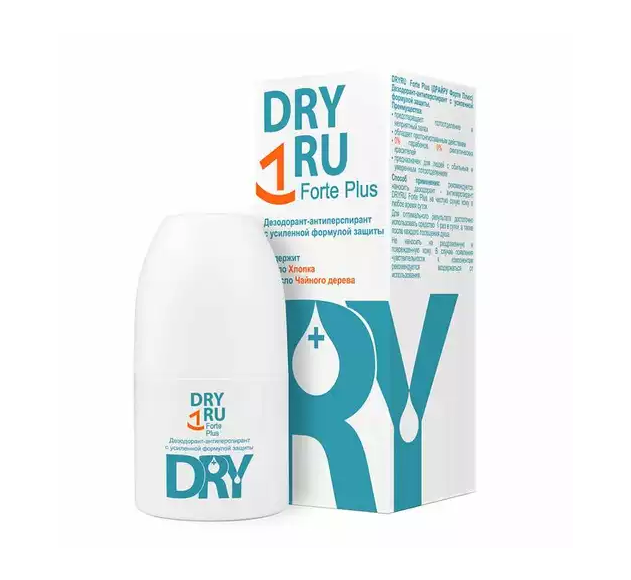 Дезодорант-антиперспирант DRY RU Forte Plus нормализует потоотделение и предотвращает развитие бактерий. Предназначен для людей с нормальным и обильным потоотделением. Масла Хлопка и Чайного дерева смягчают и тонизируют кожу, обладают выраженными антибактериальными свойствами. Преимущества: