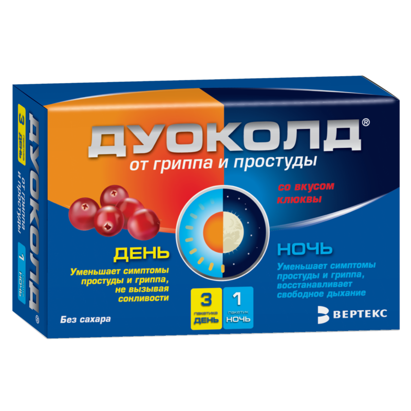 Дуоколд набор порошков для приготовления раствора для приёма внутрь со вкусом клюквы пакетики 5г день №3 + ночь №1