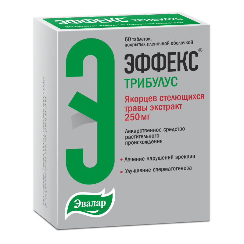 ЭФФЕКС® Трибулус — средство растительного происхождения, получаемое из надземной части якорцев стелющихся (Tribulus terrestris L.), содержит преимущественно стероидные сапонины фуростанолового типа. Оказывает общетонизирующее действие и стимулирует некоторые функции половой системы. У мужчин восстанавливает и улучшает сексуальное либидо, удлиняет время эрекции. Стимулирует сперматогенез, увеличивая количество сперматозоидов и их подвижность. Механизм действия якорцев стелющихся экстракта неизвестен. Предполагается, что преобладающее соединение протодиосцин метаболизируется в организме до дегидроэпиандростерона (DHEA), который оказывает благоприятный эффект на иммунитет, целостность клеточной мембраны, эректильную функцию и метаболизм холестерина. Известно, что холестерин является исходным веществом для синтеза всех стероидов, включительно DHEA, тестостерона и эстрадиола, чем объясняется и гиполипидемический эффект препарата. Другие активные фуростаноловые сапонины, входящие в состав якорцев стелющихся экстракта, вероятно, модулируют эффект протодиосцина. Лекарственный препарат обладает гиполипидемическим эффектом, причём у пациентов с липопротеинемией снижает общий холестерин и липопротеиды низкой плотности, не влияет на значения сывороточных триглицеридов и липопротеидов высокой плотности.