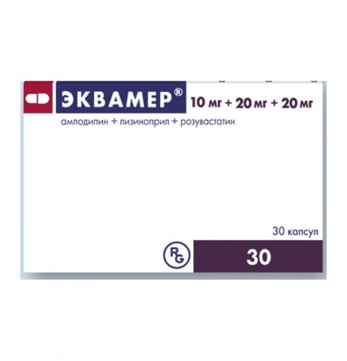 Эквамер® — комбинированный гипотензивный и гиполипидемический препарат. В состав препарата Эквамер® входят три действующих вещества — амлодипин, лизиноприл и розувастатин. Механизм действия препарата Эквамер® основан на фармакологических свойствах действующих веществ.