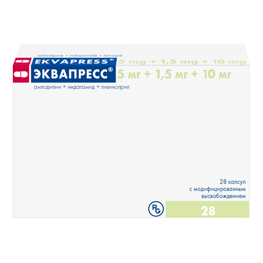 Эквапресс — фиксированная комбинация антигипертензивных компонентов амлодипина, индапамида и лизиноприла, которые обладают взаимодополняющими механизмами действия, позволяющими контролировать артериальное давление (АД), а также синергично оказывают кардиопротективное действие.
