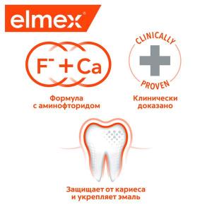 Зубная паста Colgate Элмекс ЗАЩИТА ОТ КАРИЕСА с высокоэффективным аминофторидом реминерализирует, укрепляет эмаль и защищает зубы от кариеса. Предназначена для ежедневной гигиены полости рта с целью обеспечения длительной защиты от кариеса, снижения растворимости и укрепления зубной эмали. Аминофторид, содержащийся в зубной пасте Colgate элмекс ЗАЩИТА ОТ КАРИЕСА, формирует устойчивый слой фторида кальция на поверхностях зубов, который обеспечивает длительную и высокоэффективную защиту от воздействия кислот.