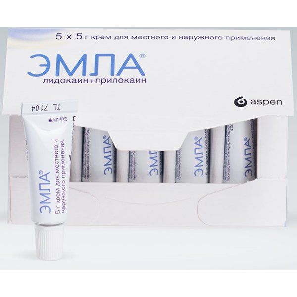 Время достижения максимальной концентрации лидокаина (0,05–0,84 мкг/мл) и прилокаина (0,02–0,08 мкг/мл) в плазме крови составляет 1–2,5 часа с момента нанесения препарата на язвенную поверхность (5–10 г крема на 30 мин). При неоднократном нанесении крема на язвенную поверхность не отмечалось кумуляции в плазме крови прилокаина, лидокаина или их метаболитов. 2–10 г крема ЭМЛА® наносились на язвенную поверхность площадью до 62 см2 на 30–60 мин от 3-х до 7 раз в неделю (15 раз в течение месяца).