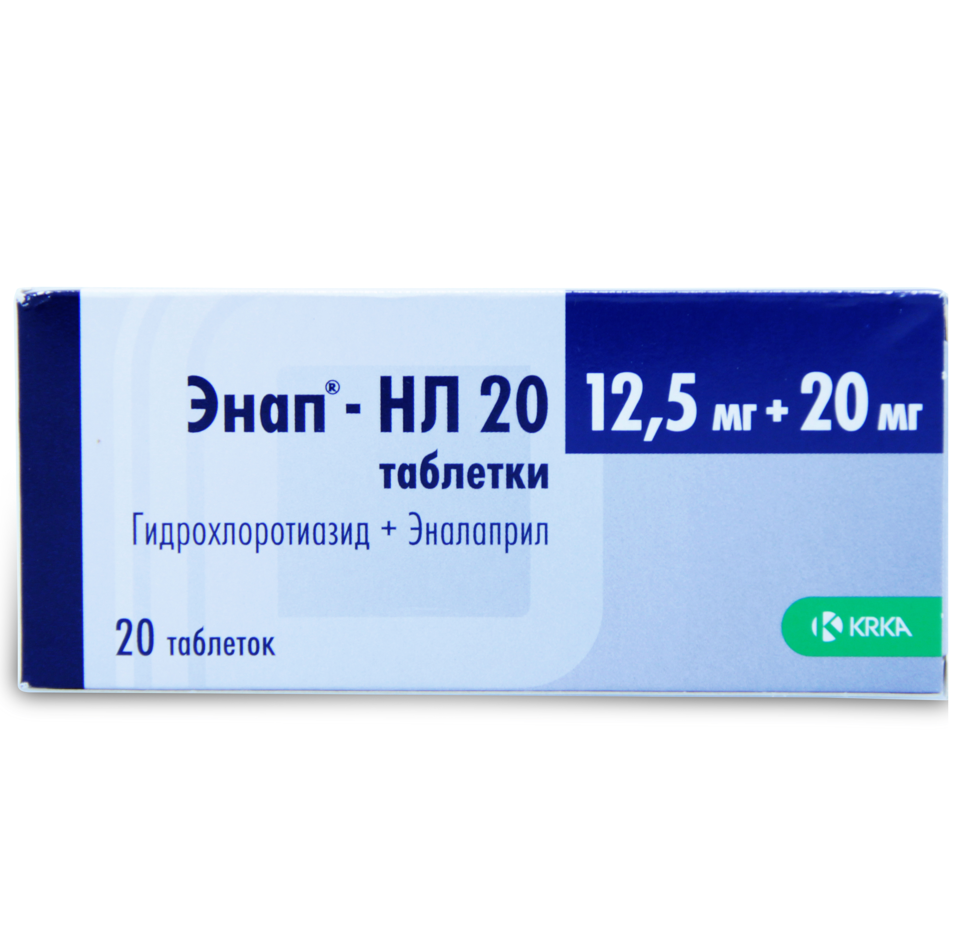 Препарат Энап®-НЛ 20 представляет собой комбинацию ингибитора АПФ (эналаприла) и диуретика(гидрохлоротиазида).