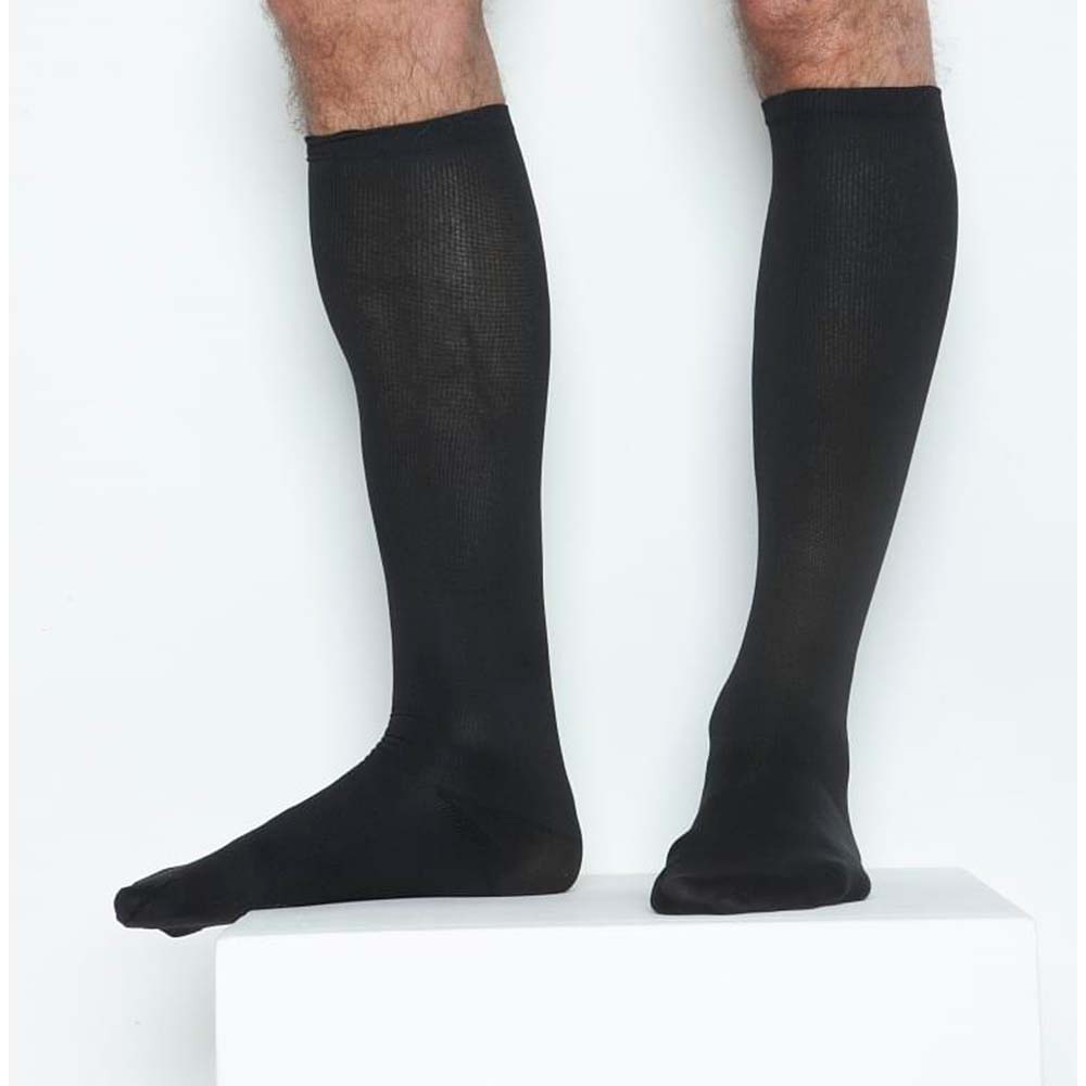 На наши ноги приходится вся нагрузка от веса, тяжелого физического труда или сидячего образа жизни. Если, в силу причин, мы употребляем малое количество питьевой воды и гормональные препараты, это так же может стать причиной загустения и застоя крови в венах нижних конечностей, результатом чего возникает варикозное расширение вен. Конечно же, немаловажную роль играет и наследственная предрасположенность к этой болезни. Тяжесть в ногах, отечность к концу дня, притупленная боль - это первичные признаки варикоза. Всегда лучше предупредить, чем лечить. Но, если неприятные чувства в ногах всё же присутствуют в вашей жизни, используйте один из самых часто рекомендуемых способов - компрессионную терапию. Для повседневного использования и комфорта, специалистами были разработаны мужские антиварикозные гольфы Ergoforma 312. Для изготовления этого медицинского трикотажа использован специальный комбинированный материал, он сдавливает мышцы ног (18-22 мм ртутного столба), компрессия составляет от 100 % в области самого узкого участка ноги, до 40% в области верхней трети голени. Это способствует улучшению кровотока вен, служит профилактикой закупорки вен. Мужские гольфы Ergoforma 312 на вид ничем не отличаются от обычного трикотажа. Это очень важно при ношении их повседневно, ведь рекомендуется использовать их, одевая утром в горизонтальном положении ног, снимая вечером, перед сном. Такой медицинский трикотаж очень удобен, он не будет отвлекать вашего внимания. Пятка и мысок гольфов имеют утолщенную структуру. При правильной эксплуатации и ежедневном применении срок эксплуатации не менее 6 месяцев без потери лечебных эффектов. Широкий размерный ряд позволит выбрать наиболее комфортные гольфы.