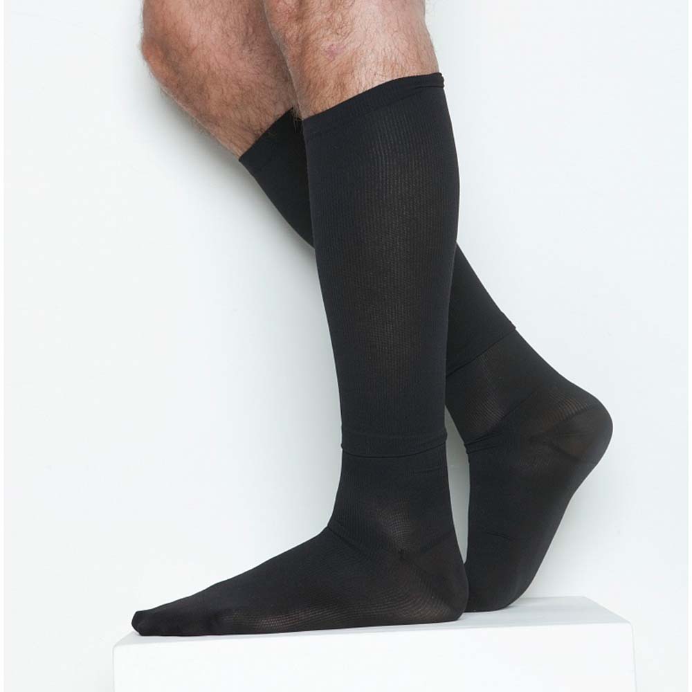 На наши ноги приходится вся нагрузка от веса, тяжелого физического труда или сидячего образа жизни. Если, в силу причин, мы употребляем малое количество питьевой воды и гормональные препараты, это так же может стать причиной загустения и застоя крови в венах нижних конечностей, результатом чего возникает варикозное расширение вен. Конечно же, немаловажную роль играет и наследственная предрасположенность к этой болезни. Тяжесть в ногах, отечность к концу дня, притупленная боль - это первичные признаки варикоза. Всегда лучше предупредить, чем лечить. Но, если неприятные чувства в ногах всё же присутствуют в вашей жизни, используйте один из самых часто рекомендуемых способов - компрессионную терапию. Для повседневного использования и комфорта, специалистами были разработаны мужские антиварикозные гольфы Ergoforma 312. Для изготовления этого медицинского трикотажа использован специальный комбинированный материал, он сдавливает мышцы ног (18-22 мм ртутного столба), компрессия составляет от 100 % в области самого узкого участка ноги, до 40% в области верхней трети голени. Это способствует улучшению кровотока вен, служит профилактикой закупорки вен. Мужские гольфы Ergoforma 312 на вид ничем не отличаются от обычного трикотажа. Это очень важно при ношении их повседневно, ведь рекомендуется использовать их, одевая утром в горизонтальном положении ног, снимая вечером, перед сном. Такой медицинский трикотаж очень удобен, он не будет отвлекать вашего внимания. Пятка и мысок гольфов имеют утолщенную структуру. При правильной эксплуатации и ежедневном применении срок эксплуатации не менее 6 месяцев без потери лечебных эффектов. Широкий размерный ряд позволит выбрать наиболее комфортные гольфы.