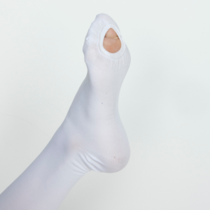 - Надеть изделие на стопу, убедиться, что пятка чулка правильно расположена на ноге.