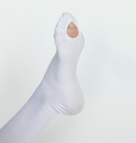 - Надеть изделие на стопу, убедиться, что пятка чулка правильно расположена на ноге.