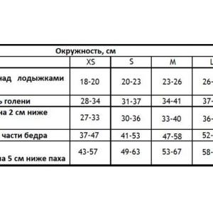 Размер изделия подбирается строго по анатомическим меркам конечности. Изделия большего размера не оказывают должного эффекта, меньшего - вызывают существенный дискомфорт при ношении.