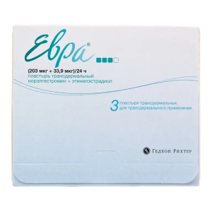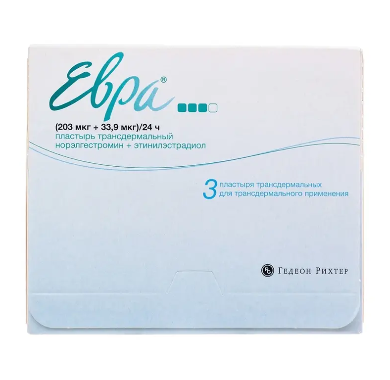 Евра пластырь трансдермальный 203мкг+33,9мкг/24ч №3