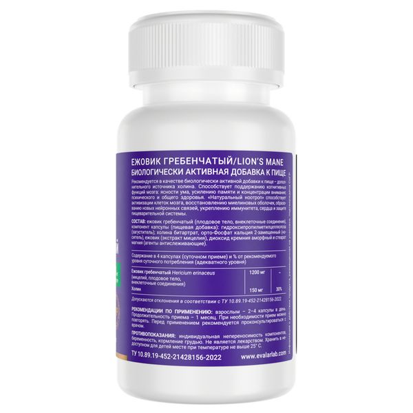 Ежовик гребенчатый 300 мг от Evalar Laboratory – это уникальный органический препарат, содержащий полный спектр грибов из мицелл, плодовых тел и внеклеточных соединений. Состав усилен холином - метаболическим предшественником важного нейромедиатора ацетилхолина.
