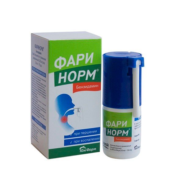 Фаринорм Бензидамин спрей для местного применения дозированный 0,255мг/доза флакон с дозатором 30мл/176 доз/