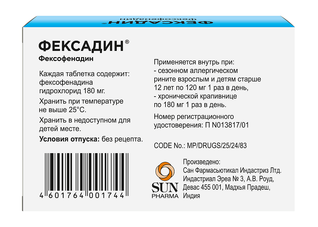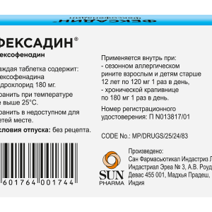 Активный ингредиент: фексофенадина гидрохлорид 120 мг или 180 мг.