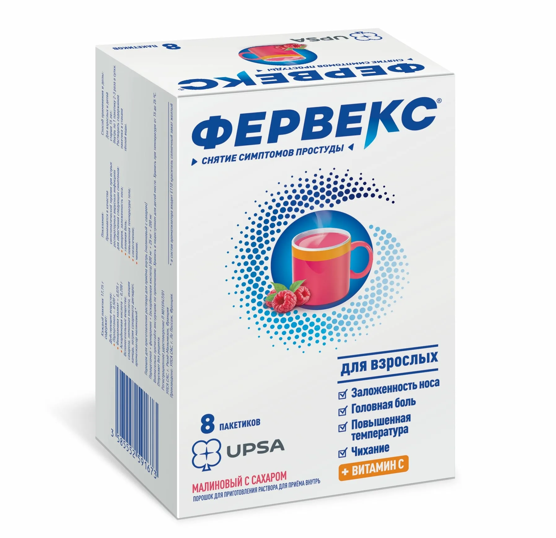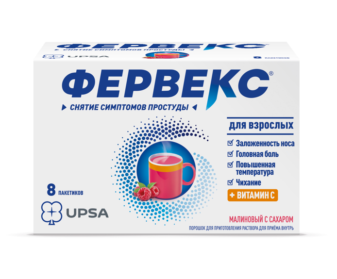 Фервекс порошок для приготовления раствора для приёма внутрь малиновый с сахаром пакетики №8