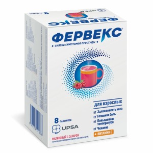 Фервекс® — комбинированный препарат, который содержит парацетамол, фенирамин и аскорбиновую кислоту. Парацетамол — ненаркотический анальгетик, блокирует циклооксигеназу, преимущественно в центральной нервной системе, воздействуя на центры боли и терморегуляции оказывает анальгезирующее и жаропонижающее действие.