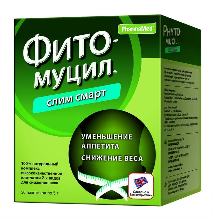 ФИТОМУЦИЛ СЛИМ СМАРТ - способствует уменьшению аппетита, очищению кишечника и снижению веса. СОСТАВ - НАТУРАЛЬНЫЙ НА 100%! Снижает аппетит. Уменьшает всасывание жиров и углеводов. Уменьшает общую калорийность пищи. Обеспечивает регулярное естественное очищение кишечника. Выводит шлаки и токсины.