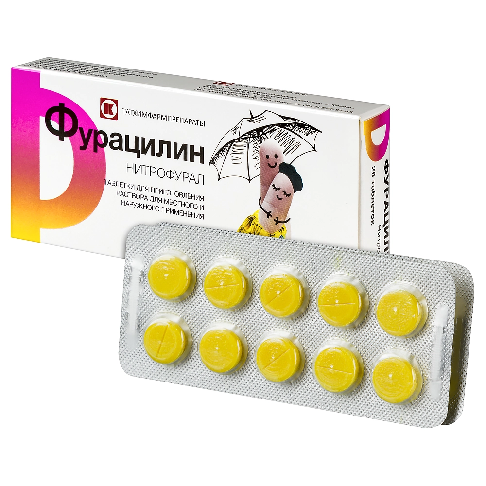Фурацилин таблетки для приготовления раствора для местного и наружного применения 20мг №20