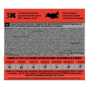 Гардекс еxtreme аэрозоль-репеллент от всех летающих кровососущих насекомых и клещей флакон 150мл