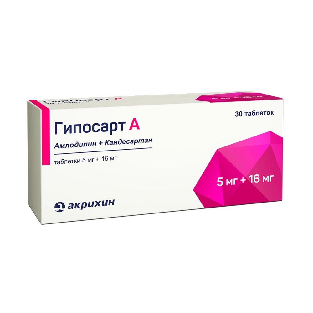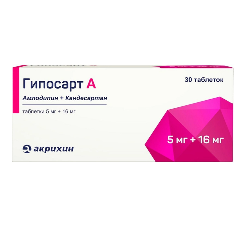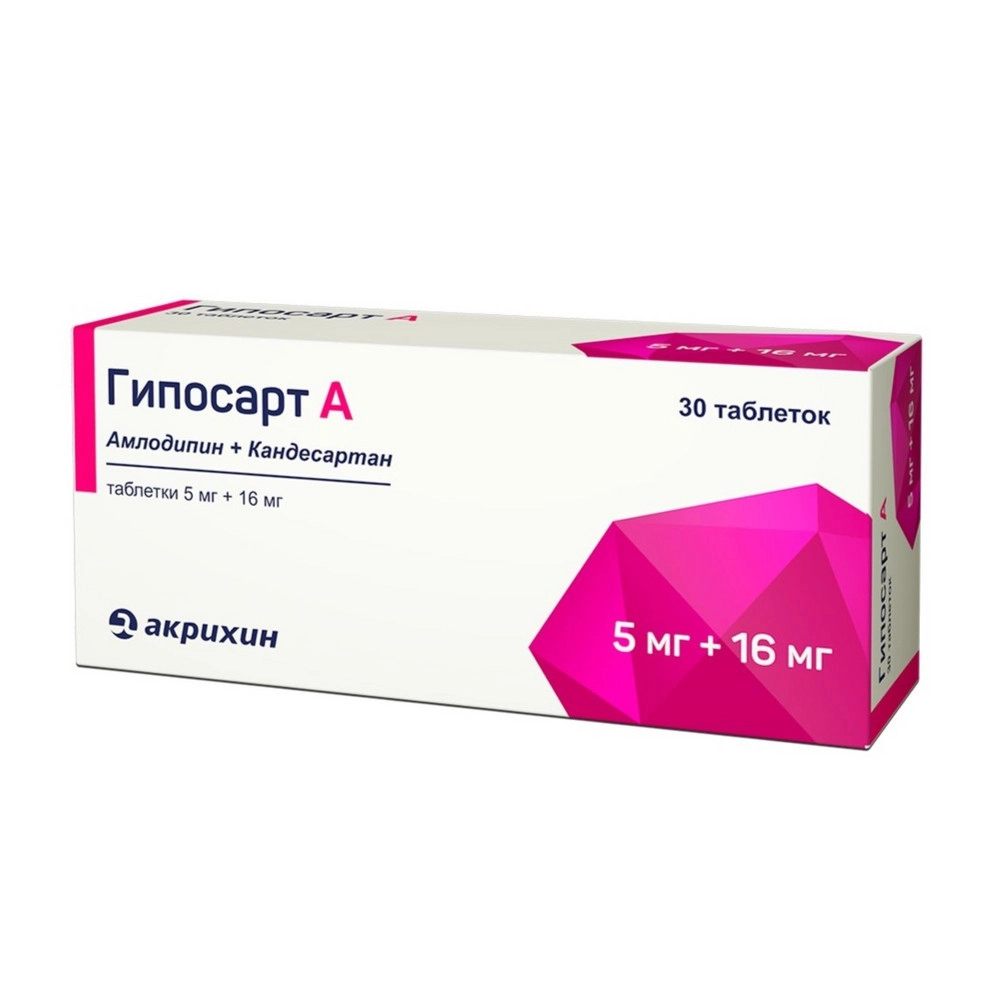 Препарат Гипосарт А — гипотензивное (снижающее уровень артериального давления) комбинированное средство (антагонист рецепторов ангиотензина II + блокатор «медленных» кальциевых каналов).