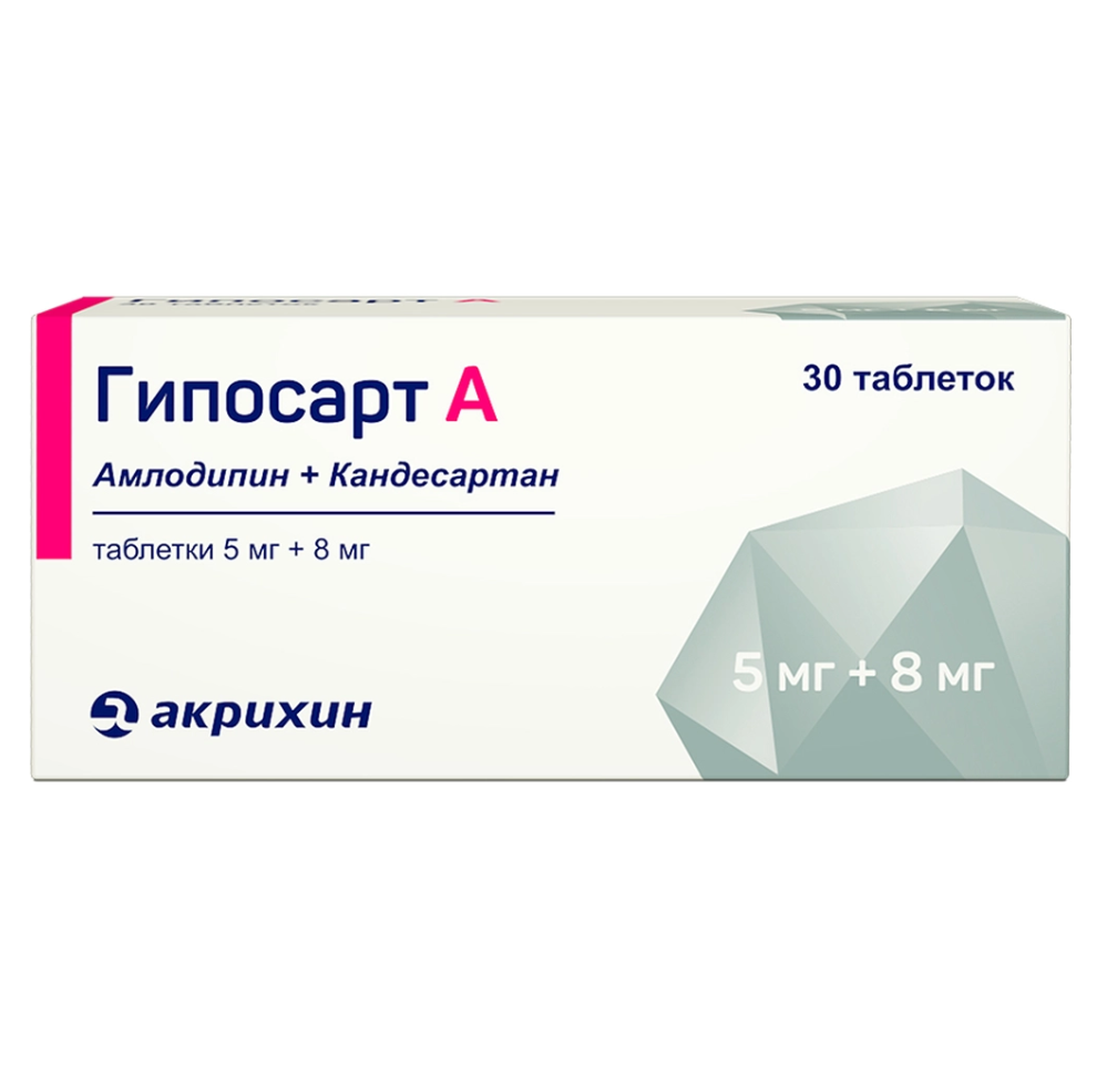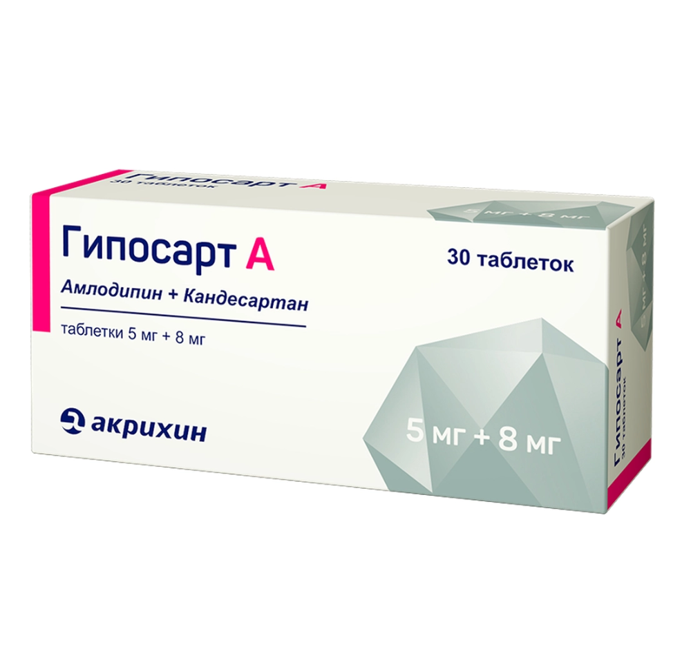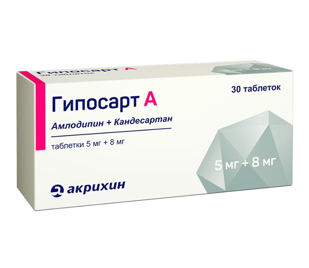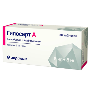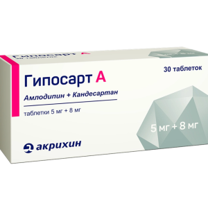 Препарат Гипосарт А — гипотензивное (снижающее уровень артериального давления) комбинированное средство (антагонист рецепторов ангиотензина II + блокатор «медленных» кальциевых каналов).
