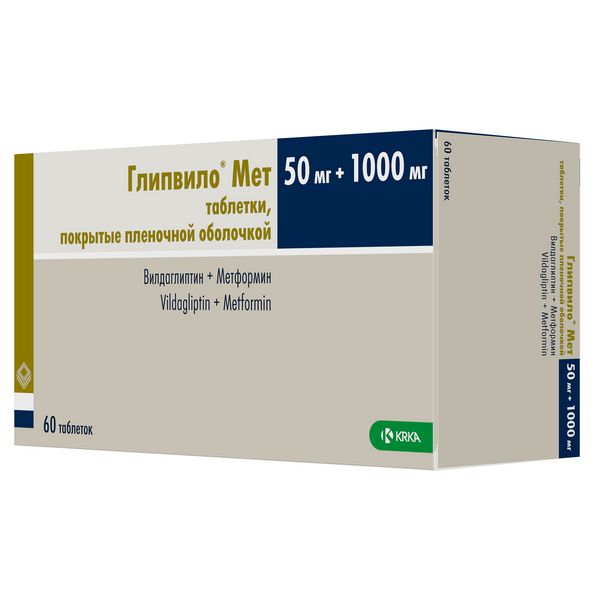 Глипвило® Мет, 50 мг + 1000 мг, таблетки, покрытые плёночной оболочкой