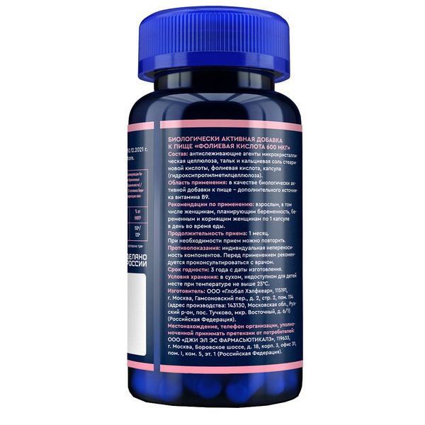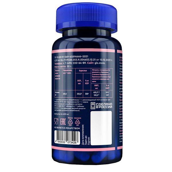 GLS Фолиевая кислота 600мкг капсулы 400мг №60