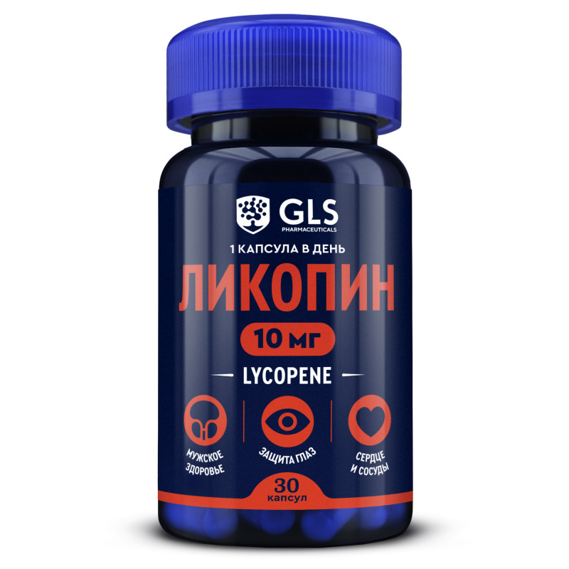 GLS ЛИКОПИН - Биологически активная добавка (БАД) к пище - защита глаз, сердце и сосуды, мужское здоровье. Обладает мощным антиоксидантным действием, способствует устранению негативного влияния окислительного стресса на организм, поддержанию молодости и красоты - Anti-age эффект. Защищает ткани глаза от повреждения свободными радикалами, препятствует развитию воспаления сетчатки. Снижает риск ухудшения зрения и возрастных заболеваний глаз, в т.ч. катаракты. Оказывает противовоспалительное действие и способствует поддержанию здоровья простаты. Снижает риск развития доброкачественной гиперплазии (аденомы) и рака предстательной железы. Улучшает мочеиспускание. Поддерживает здоровье сердечно-сосудистой системы, способствует укреплению сосудов и капилляров. Снижает уровень холестерина в крови, препятствует развитию атеросклероза и других сердечно-сосудистых заболеваний. Связывает, нейтрализует и способствует выведению токсинов из организма - Detox-эффект. Снижает риск развития заболеваний печени, в т.ч. связанных с приёмом алкоголя.
