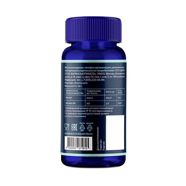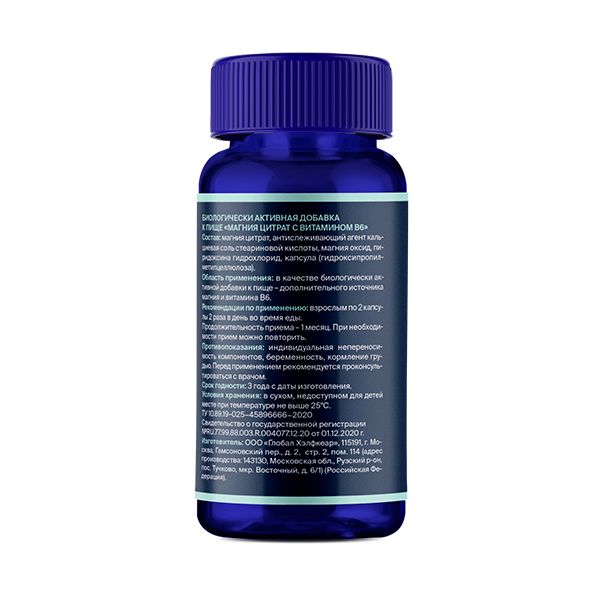 «Магния цитрат с витамином В6» - биологически активная добавка к пище - гидроксипропилметилцеллюлозные капсулы. Подходит для вегетарианцев.