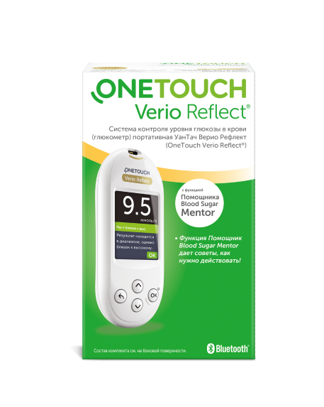 Новый глюкометр OneTouch Verio Reflect® имеет следующие преимущества: OneTouch Verio Reflect® - это единственный глюкометр в России, который дает советы и мотивирует.