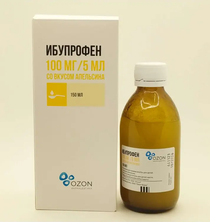 Перед употреблением тщательно взболтайте флакон. 5 мл препарата содержат 100 мг ибупрофена или 20 мг ибупрофена в 1 мл.