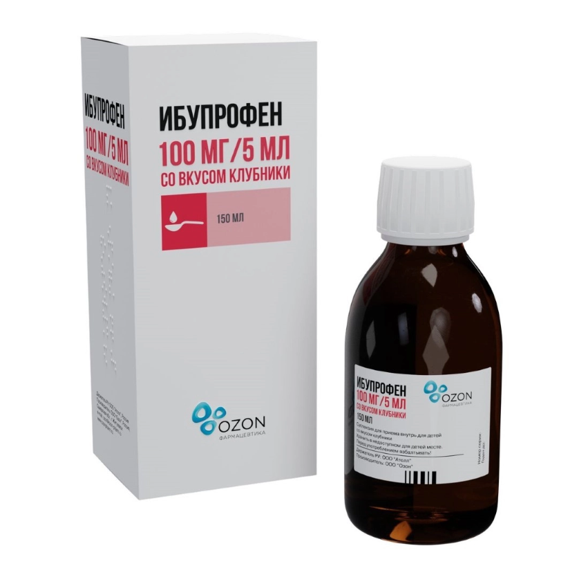 Ибупрофен суспензия для приёма внутрь для детей со вкусом клубники 100мг/5мл флакон 150мл