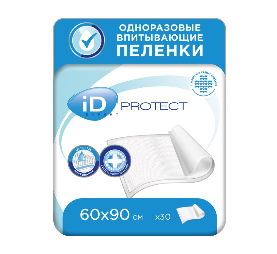 - Отличное впитывание. Пеленки iD PROTECT EXPERT отлично впитывают и эффективно распределяют жидкость.