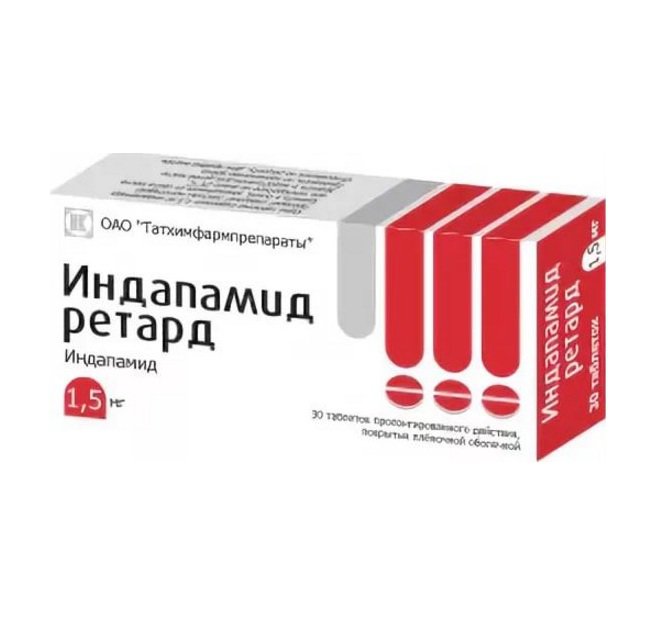 Индапамид ретард таблетки пролонгированного действия покрытые пленочной оболочкой 1,5мг №30