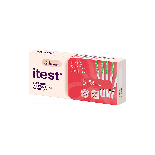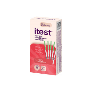 Набор из 5 тест-полосок. Тест представляет собой пропитанную реагентом (мечеными антителами к ЛГ) бумажную полоску, которую на 10 секунд погружают в емкость с мочой. Тест помогает определить дни, когда вероятность зачатия максимальна.