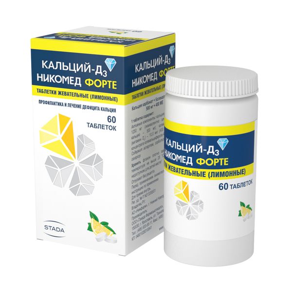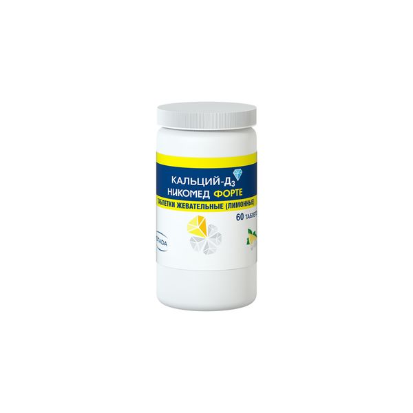 Кальций-Д3 Никомед форте таблетки жевательные лимонные 500мг+400МЕ №60