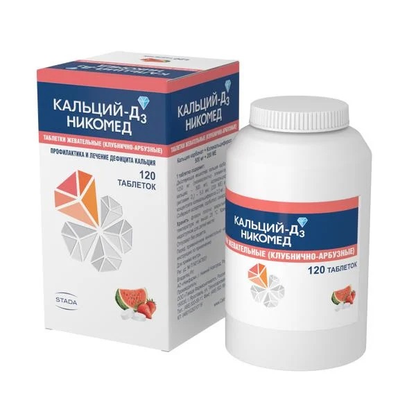 Кальций-Д3 Никомед таблетки жевательные клубнично-арбузные 500мг+200МЕ №120