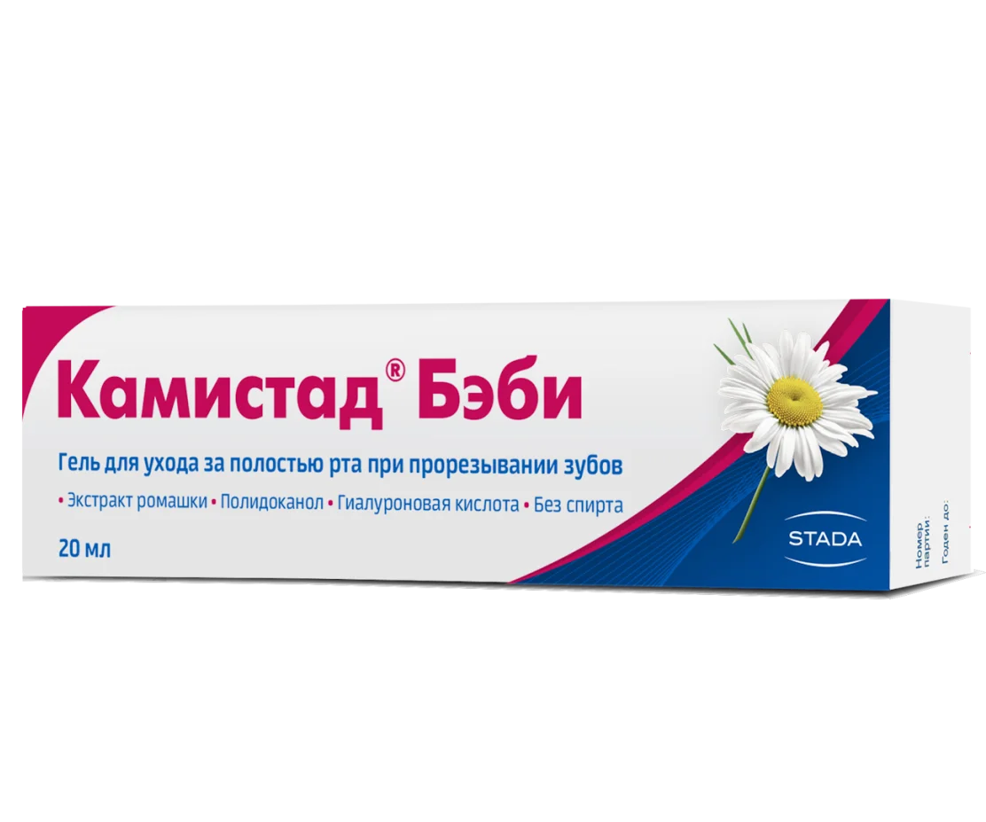 - Ароматизаторы (медовый и охлаждающий) придают гелю Камистад® Бэби приятный вкус.