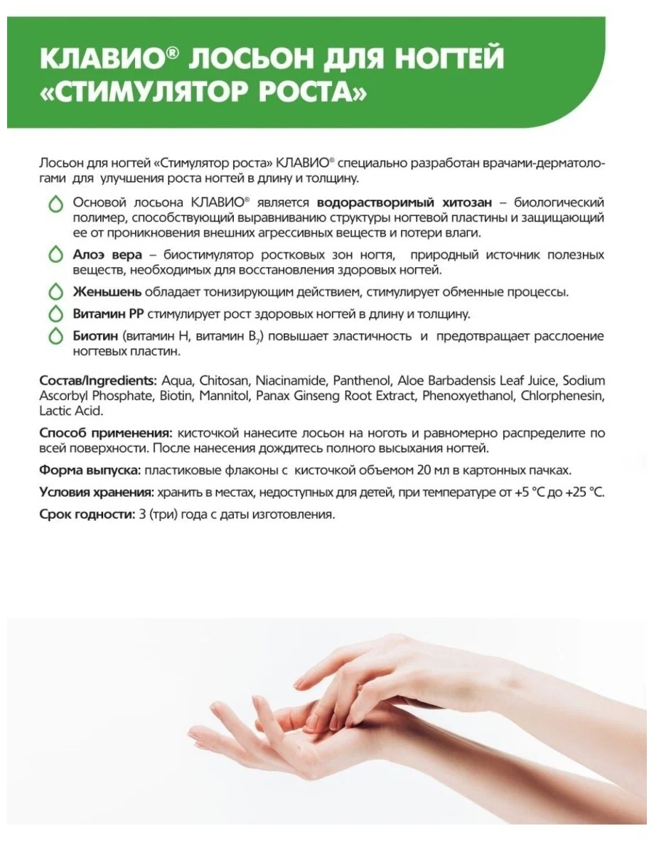 Лосьон для ногтей «Стимулятор роста» КЛАВИО специально разработан врачами-дерматологами для улучшения роста ногтей в длину и толщину.
