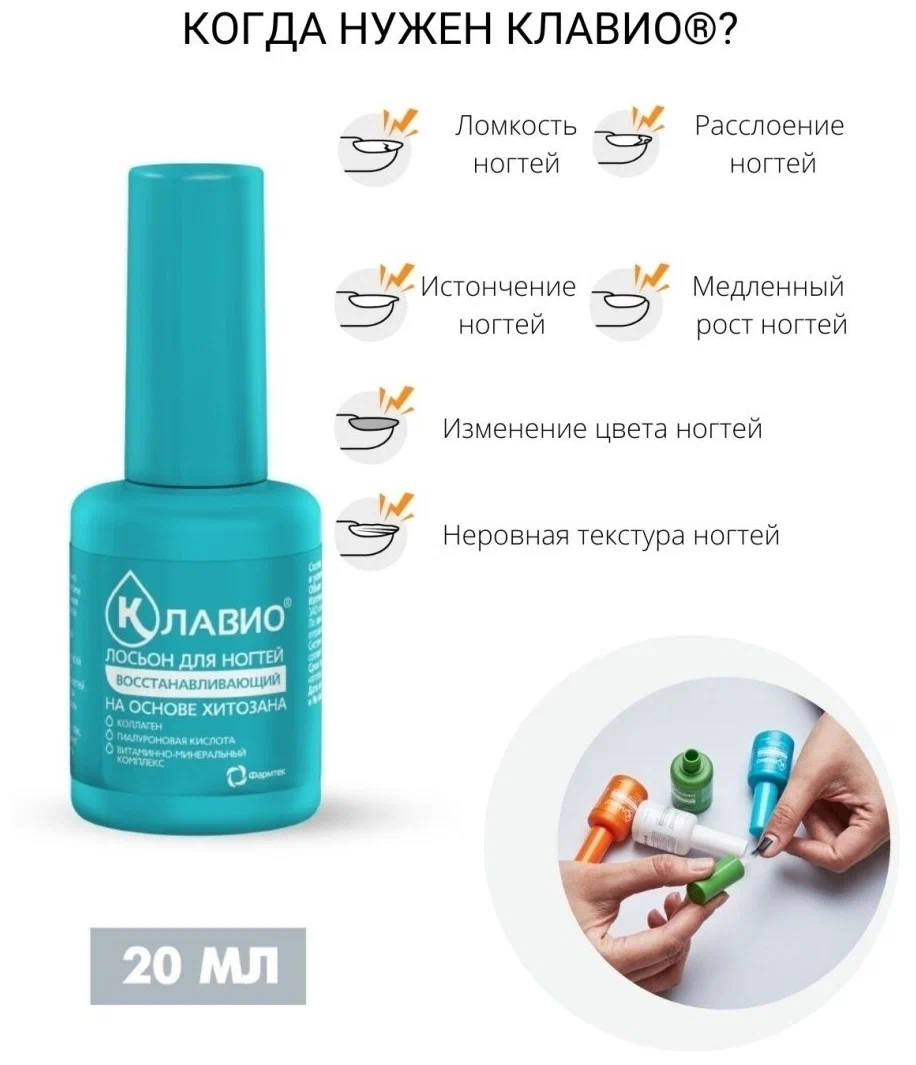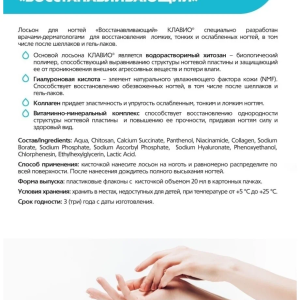 Лосьон для ногтей «Восстанавливающий» КЛАВИО специально разработан врачами-дерматологами для восстановления ломких, тонких и ослабленных ногтей, в том числе после шеллаков и гель-лаков.
