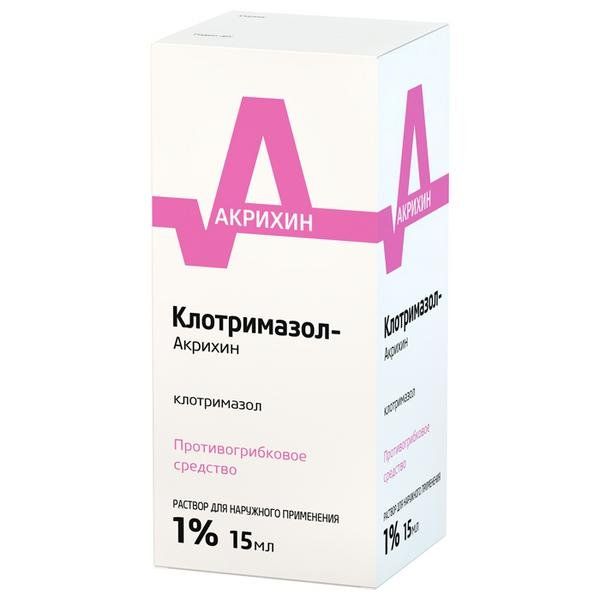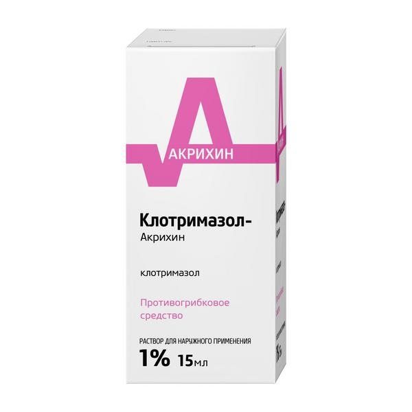 Клотримазол-Акрихин раствор для наружного применения 1% флакон 15мл